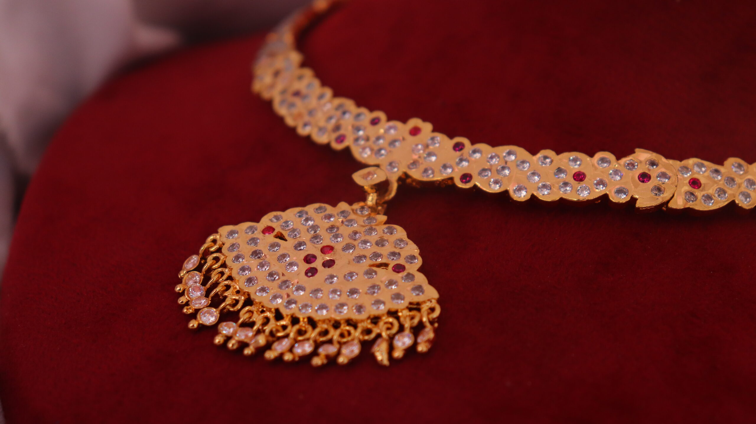 This necklace is intricately designed to reflect timeless beauty and cultural heritage. Perfect for traditional functions or festive occasions, it offers elegance with detailed craftsmanship and a regal touch.