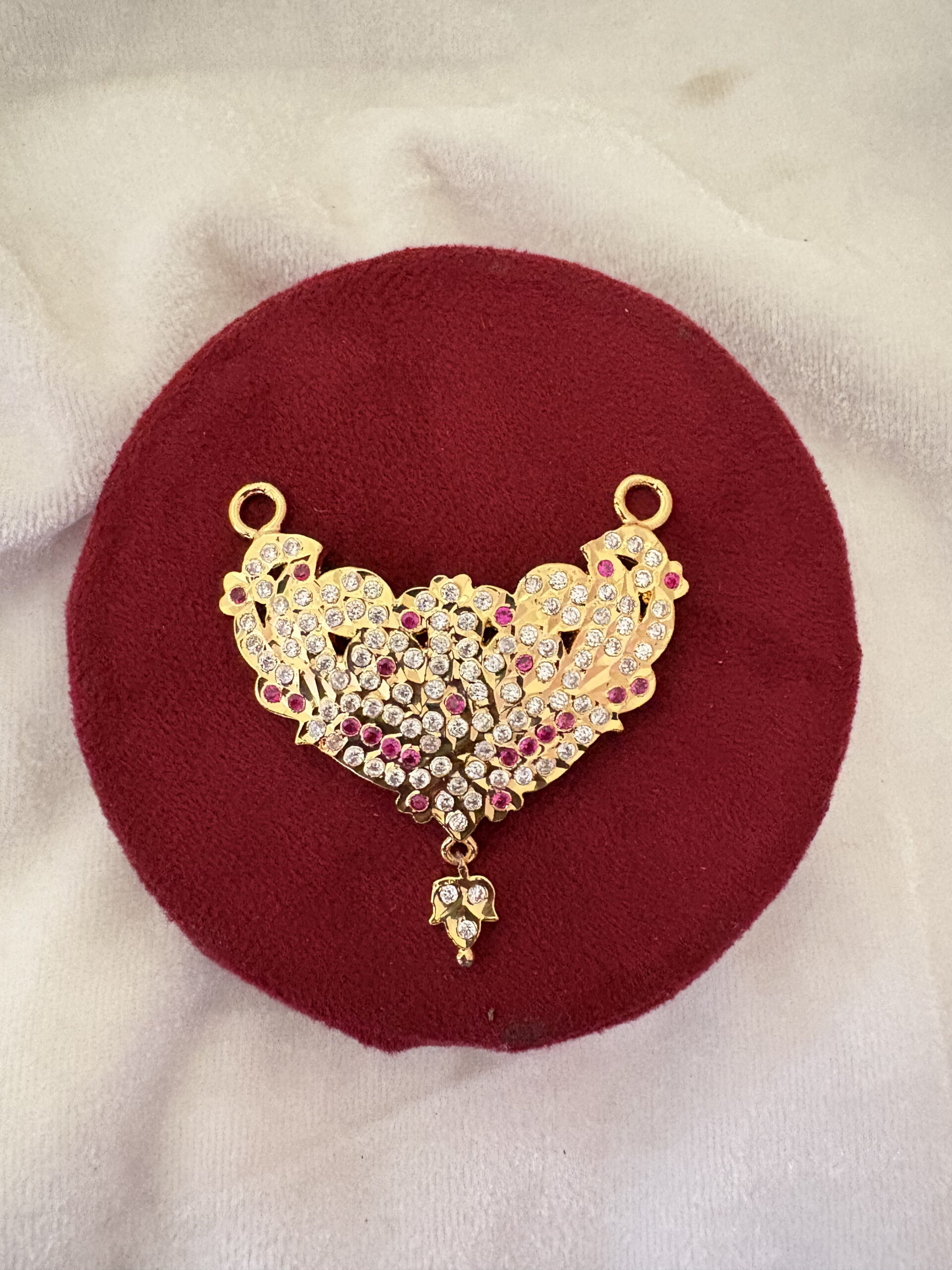 This bold and graceful V Dollar pendant is adorned with shimmering stones that embody strength, devotion, and victory. Perfect for the faithful and fashion-forward.